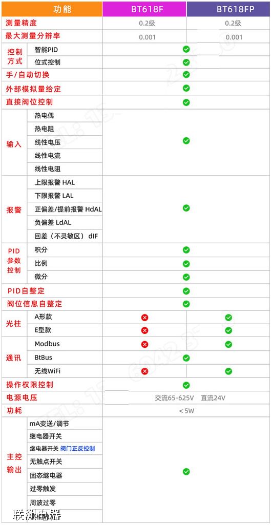 BT618F、BT618FP比例閥/直接閥位/閥門正反轉(zhuǎn)PID調(diào)節(jié)控制器支持比例閥、直接閥位閥門控制,支持外給定及手/自動切換輸出。采用智能PID調(diào)節(jié)控制,常用于流量、液位、壓力、濕度、溫度的測量與控制。主控輸出支持mA調(diào)節(jié)、交流接觸器控制、固態(tài)繼電器控制、可控硅過零/周波過零/移相觸發(fā)等。輸入可使用熱電偶、熱電阻、隔離配電器,如4-20mA、電磁流量計、壓力變送器輸?shù)容斎。同時可以選3路輔助輸出;如報警、通訊、mA變送等。