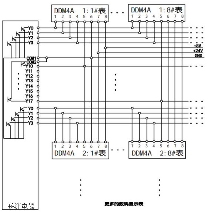 驅(qū)動DDM數(shù)碼表應(yīng)為晶體管輸出型。而機(jī)械式繼電器輸出型存在10ms過渡狀態(tài)且觸點(diǎn)壽命有限,固態(tài)繼電器輸出型存在著殘余電流,可能會引起數(shù)碼表誤動作,因此我們不推薦使用。