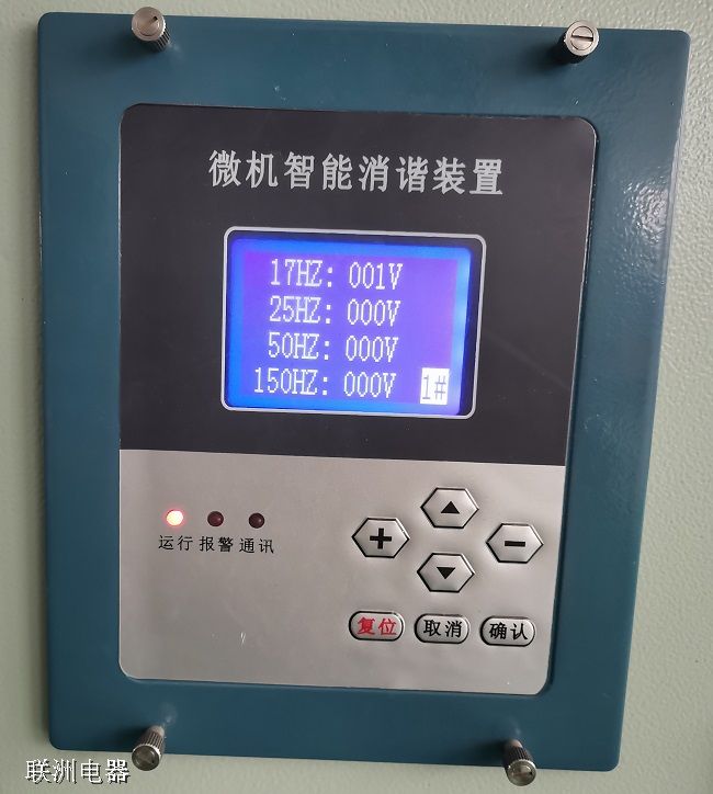 微機型諧振消除裝置可以實時監測電壓互感器開口三角 處的電壓和頻率,當發生鐵磁諧振時,裝置瞬時啟動無觸點開關, 將開口三角繞組瞬間短接,產生強大阻尼,從而消除鐵磁諧振。若啟動諧振消除元件瞬間短接后,諧振仍未消除,則裝置再 次啟動諧振消除元件,出于對電壓互感器安全的考慮,裝置共可 啟動三次諧振消除元件。
