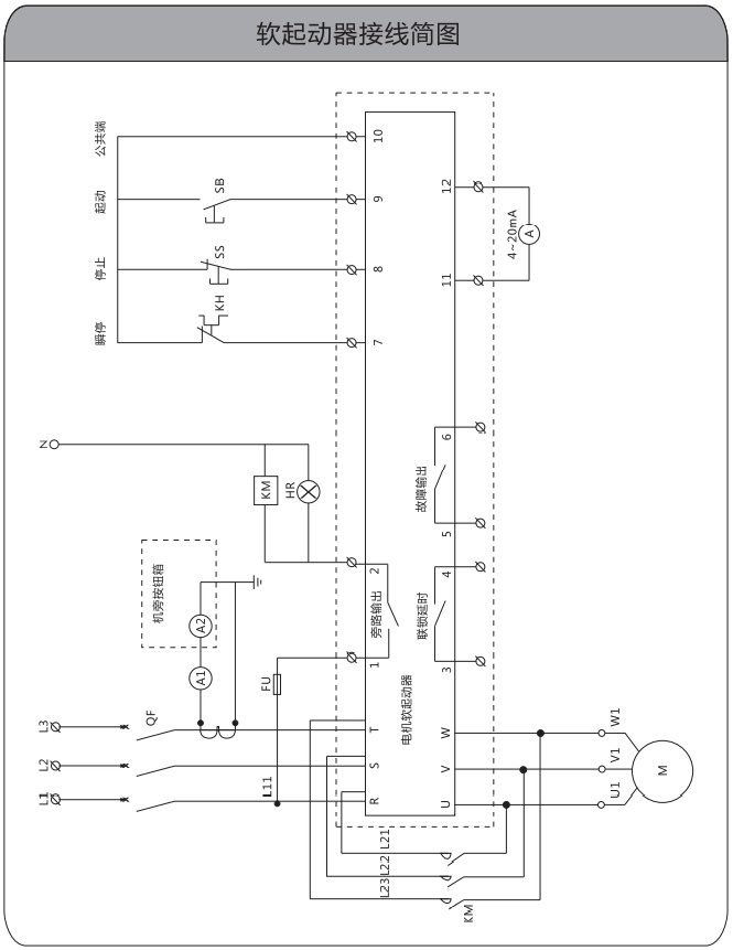●端子9為軟起輸入:當9與10接通瞬間,為軟起動。