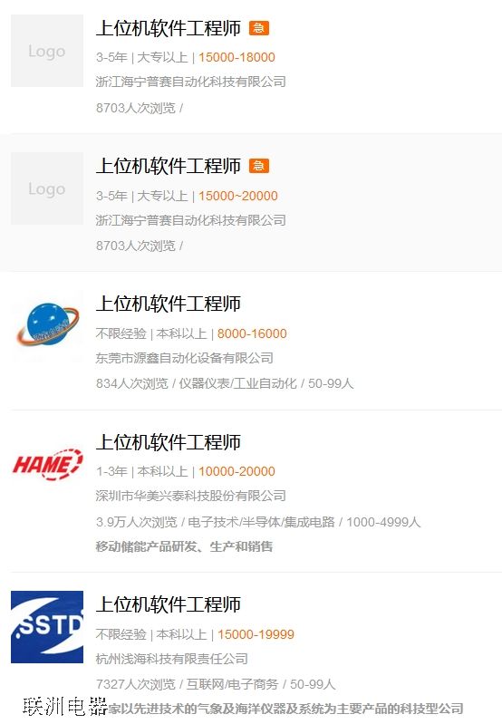Android上位機軟件工程師工資高不高你就看下面的求職列表的截圖就知道了: