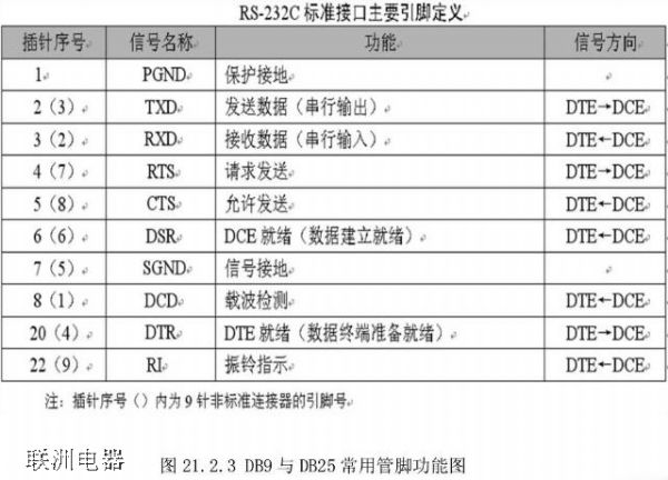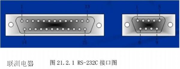 RS-232C定義了數據終端設備(DTE)與數據通信設備(DCE)之間的物理接口標準。RS-232C 接口規定使用 25 針連接器,簡稱 DB25,連接器的尺寸及每個插針的排列位置都有明確的定義,如圖 21.2.1 所示: