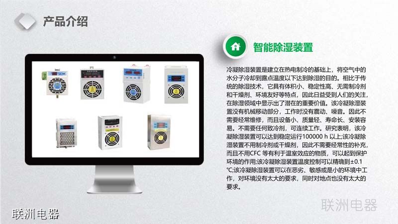 ●溫濕度監測及顯示功能:本裝置具有實時測量和顯示溫濕度及當前運行狀態功能。。迅速降低開關柜內濕度,水份直接排出柜外本裝置可將柜內空氣中的水汽凝露于除濕裝置內部,并且通過導流管排出柜外實現除濕。