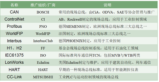 圖 3 目前主流的現(xiàn)場總線
