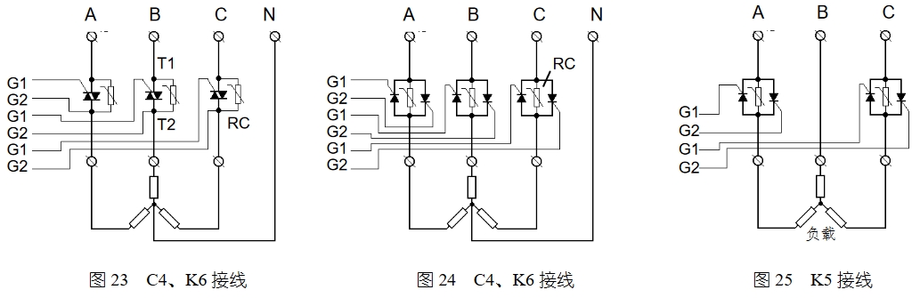 特別提示:輔助觸發(fā)組件必須如上圖所示接在朝向電源的三個(gè)可控硅上!儀表的三組觸發(fā)線必須接在朝向負(fù)載的三個(gè)可控硅上