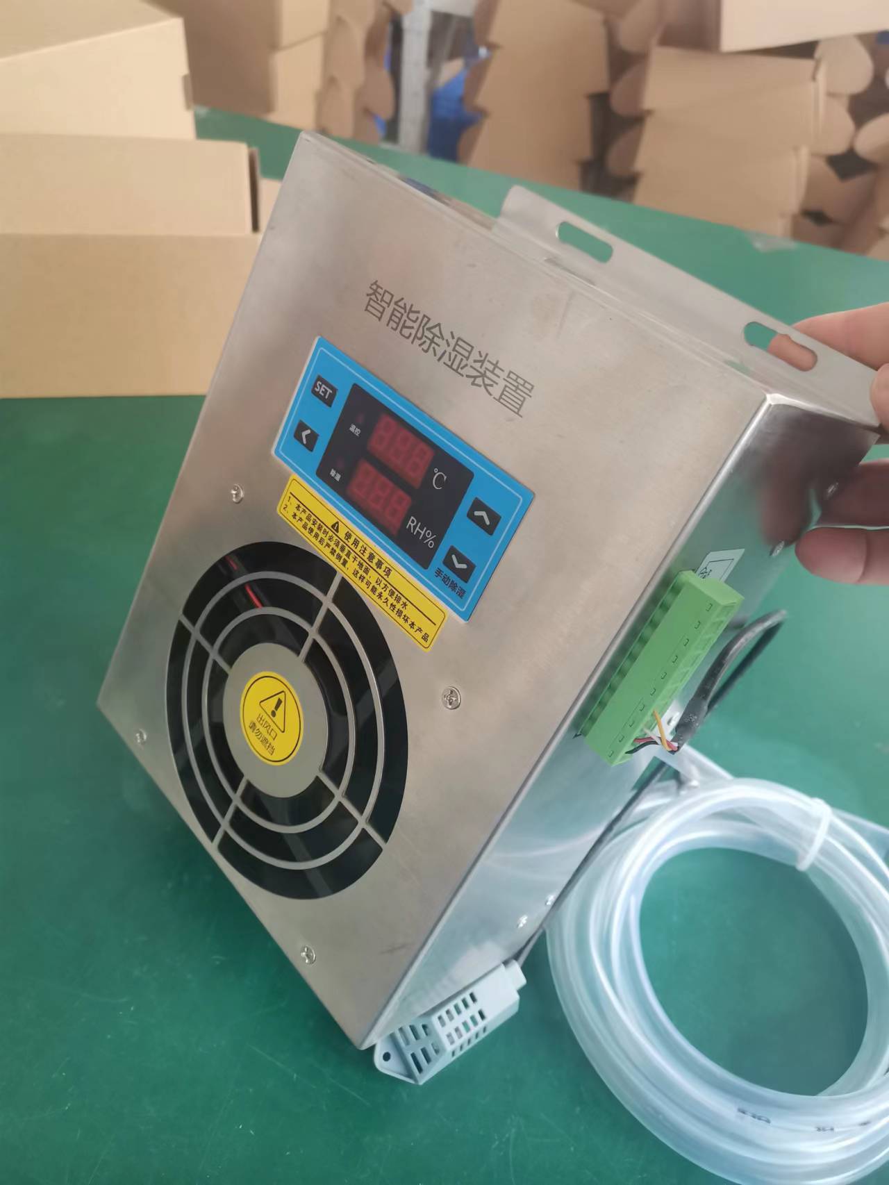 GCH-8120S智能型除濕裝置是采用半導(dǎo)體制冷除濕方式,主動(dòng)將密閉空間的潮濕空氣在風(fēng)扇的作用下吸入除濕風(fēng)道,空氣中的水汽經(jīng)過(guò)半導(dǎo)體制冷機(jī)構(gòu)后冷凝成水,再通過(guò)導(dǎo)水管排出柜體,可以達(dá)到很好的除濕效果。