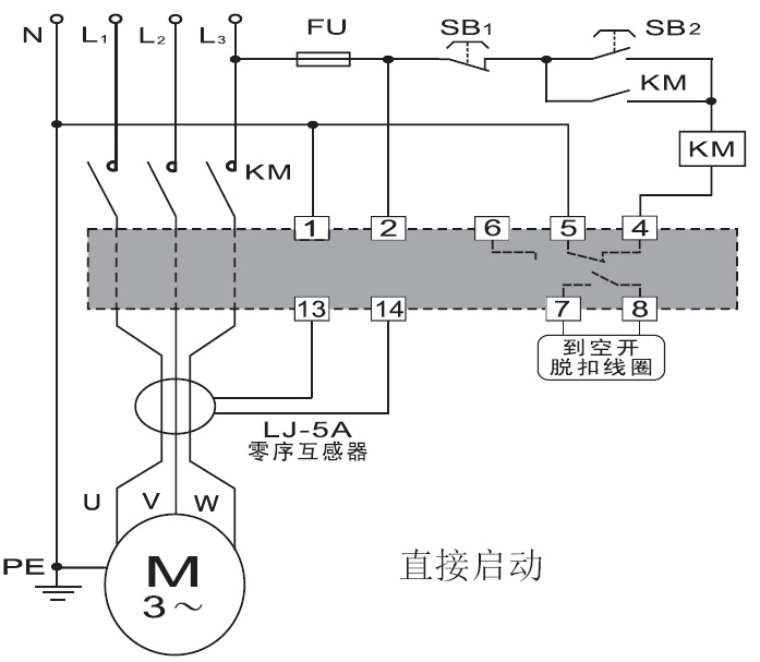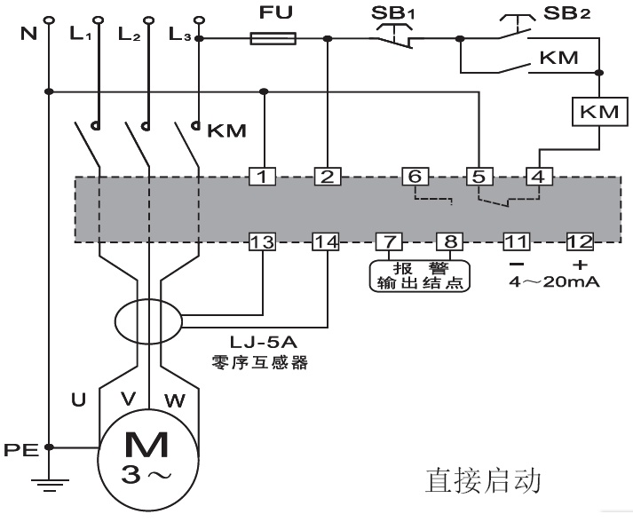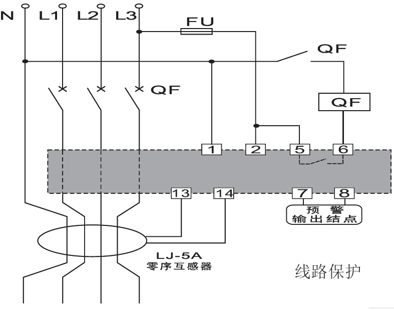 2、保護(hù)裝置的工作電源應(yīng)接在控制回路上,并注意標(biāo)稱電壓與實(shí)際電壓相符合。