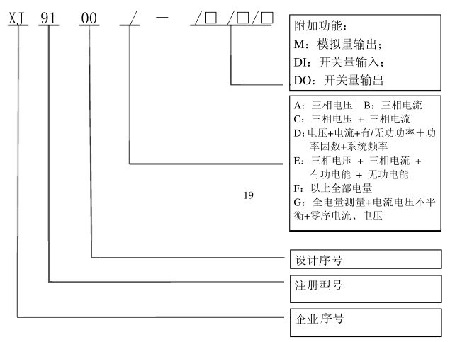 XJ9100多功能電力儀表系列產品采用先進的微處理器和數字信號處理技術,可測量電網中的單三相電壓、電流、有功功率、無功功率、功率因數、電網頻率、有功電度、無功電度等各種常用電力參數,同時還可選帶開關量輸入、報警輸出、模擬量變送輸出、脈沖輸出、RS485網絡通訊功能。