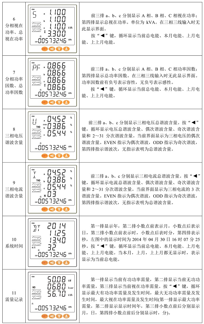 需量 | 實時及最大有功功率,無功功率,視在功率需量及發生時間 | ||